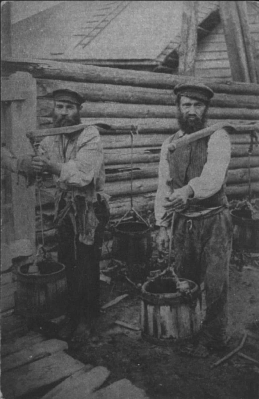Two men carrying water, Moscow, Russia, c. 1920.
